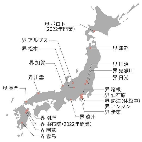 「界」は星野リゾートが全国に展開する温泉旅館ブランドです。「王道なのに、あたらしい。」をテーマに、季節の移ろいや和の趣、伝統を生かしながら現代のニーズに合わせたおもてなしを追求しています。また、その地域の伝統文化や工芸を体験する「ご当地楽」や、地域の文化に触れる客室「ご当地部屋」が特徴です。現在、全国各地に展開しており、2021年7月に18施設目となる「界 別府」が大分県・別府温泉に開業しました。