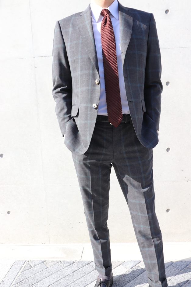 生地は少し派手めなものを選びましたね。私はスーツを着る機会は月に数回程度です。