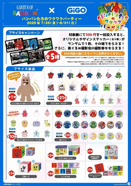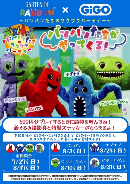株式会社GENDA GiGO Entertainment(本社:東京都港区、代表取締役社長:二宮 一浩以下「当社」)は、人気ホラーゲーム『Garten of Banban』とGiGO大宮アルシェのコラボレーションイベント「Garten of Banban × GiGO ~バンバンたちのワクワクパーティー~」を、2025年7月25日(金)より開催いたします。