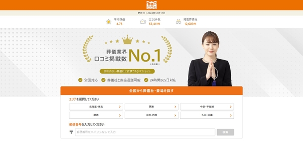 ・葬儀業界No.1の口コミ掲載数