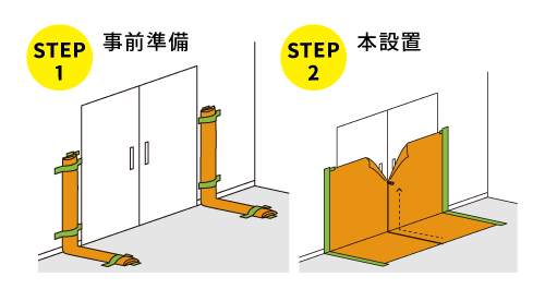 土のうなどの従来品は出入口をふさぐため出入りや業務の妨げになります。