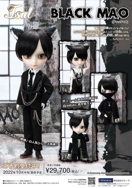 株式会社グルーヴは、ファッションドール プーリップシリーズの男の子ドール・イスルとクリエーター『カニホル×櫁蜂』の人気コラボレーションドール『MAO』の第三弾、「イスル/BLACK MAO (ブラックマオ)」を販売いたします。