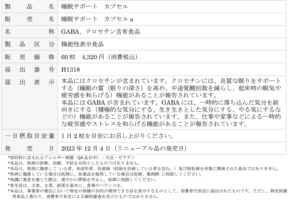 当社は、生活者の皆さまからの「夜中に何度も目が覚めてしまう」、「仕事や家事などにより一時的な疲労やストレスを感じる」といったお悩みにお役立ちできればとの想いから、「睡眠サポート カプセル」の届出表示を見直しました。