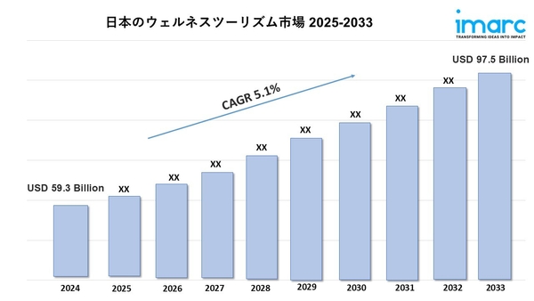 日本のウェルネスツーリズム市場規模は、2033年に975億米ドルに達すると予測されています。年平均成長率(CAGR)は5.1%です。