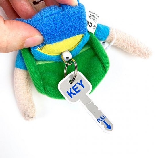 こちらは、フィンのキーホルダーです。一見、ただのマスコットのようですが、背中の部分にキーを取りつけるリングが付いています。