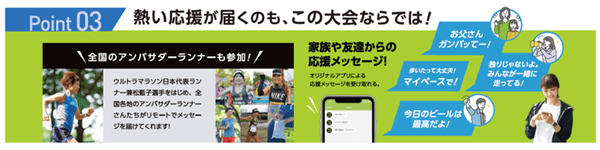 実際は一人で走っていても全国の参加ランナーと繋がっていることを感じて最後まで頑張れる、そんな自信に必ずつながると思います。