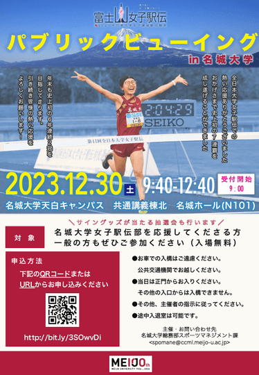 【名城大学】12/30 富士山女子駅伝のパブリックビューイングを開催