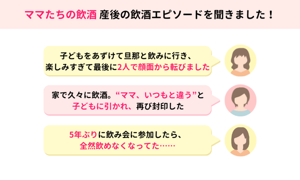 産後に飲酒を再開したママたちからは、以下のような失敗談が寄せられました。