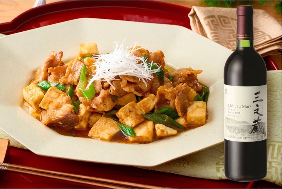 肉料理、「牛バラ肉オイスター豆腐」には「シャトー・マルス 穂坂三之蔵ルージュ(本坊酒造)」を合わせて。
