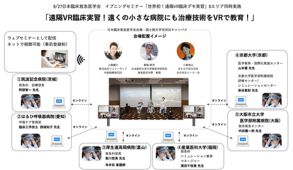 これに伴い、ジョリーグッドは日本臨床救急医学会と共同で、8月27日(木)に医療業界初の全国7拠点の病院と会場を「多接続リモートVR臨床システム」で繋ぐ、医療業界初の遠隔VR医療セミナー(以下、本セミナー)を実施いたします。