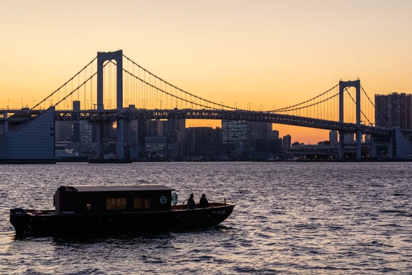 日本旅館「星のや東京」は、2021年9月1日から11月30日の期間、貸切舟の開放的な桟敷席で江戸の「いいもの」を楽しむ「東京・秋の夕さり舟あそび」を今年も開催します。日本橋桟橋で貸切の舟に乗り、東雲(しののめ)運河を経由し、東京湾を巡る90分のクルーズです。屋外にある桟敷席では、江戸時代より人々に親しまれてきた鰻と貴醸酒のペアリングを提供します。秋の澄みきった空気の中、刻々と移り変わる美しい夕空、日が暮れたあとには、大きく開けた東京湾からの近代的な夜景など、江戸の「いいもの」を楽しめます。貸切舟というプライベートな空間で、優雅な秋のひとときを家族や友人と過ごせます。