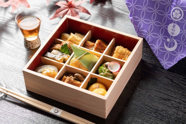 寿司や天ぷらなどでよく使用される「江戸前」という言葉は、元々は江戸湾(現在の東京湾)であがった魚介全般を指し、中でも鰻は当時もっとも多く獲れたことから、江戸の人々に親しまれてきました。(*1)船上では、鰻の名店「日本橋いづもや」の協力のもと、「鰻尽くし重」を提供します。これは、秋から冬にかけてが旬と言われる鰻を様々な仕立てで堪能できる、本アクティビティ特製のお重です。酢飯の中に鰻を入れ薄焼き卵で巻いた「鰻の黄金焼き」や鰻本来の旨味が味わえる「白焼き」など、熟練の職人の技が活きる鰻料理を楽しめます。