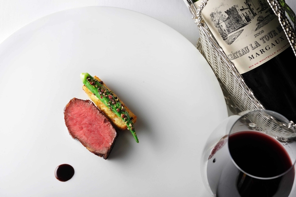 熟成香が漂う牛肉には、ワインの熟成感が良く合います。14年間の熟成がつくり出す魅力的な香りが炭火とヒバの芳ばしい香りと合わさることにより、肉料理の味わいをより重層的に引き立てます。