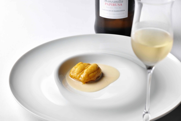 濃厚な貝出汁の旨味が際立つ「いちご煮」には、沿岸部で造られ海のミネラルを豊富に含んだシェリー酒を合わせます。ミネラル豊富なワインを合わせることで、雲丹や鮑の複雑味やほろ苦さと磯の香りをより堪能できます。