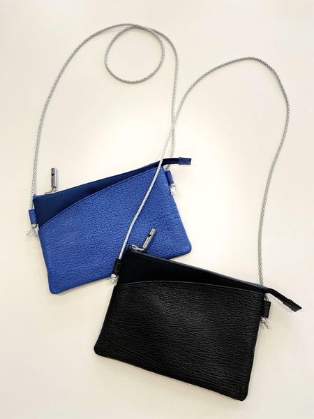 機能にこだわり、携帯電話、鍵、カード類、筆記具等の必須アイテムを携帯する機能に特化し、ショルダーストラップには災害時やアウトドアシーンで活躍する強度の高いロープ状のツール"パラコード"を採用、ファスナー引き手には非常時に役立つホイッスルを取り付けました。使用している宮城県気仙沼市産のヨシキリザメのレザーは、軽量かつ防滴性と耐久性に優れており、世界最高品質のサメ革として注目を集める素材ですが、加工等の難しさや取扱業者の少なさを理由にその多くが廃棄されています。加工の問題を解決して、商品化することで、東日本大震災の被災地である気仙沼市の地元産業振興に繋がります。