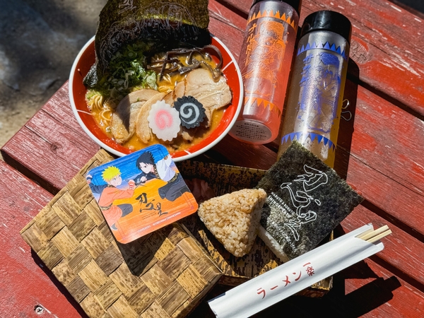 ・一楽ラーメン ・おむすび2個 ・ドリンクボトル(ナルトorサスケ) ・特別任務オリジナルコースター(特典)