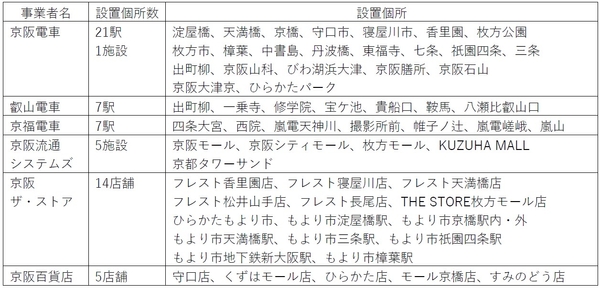 【別表】 京阪グループ内 ビーコン設置個所