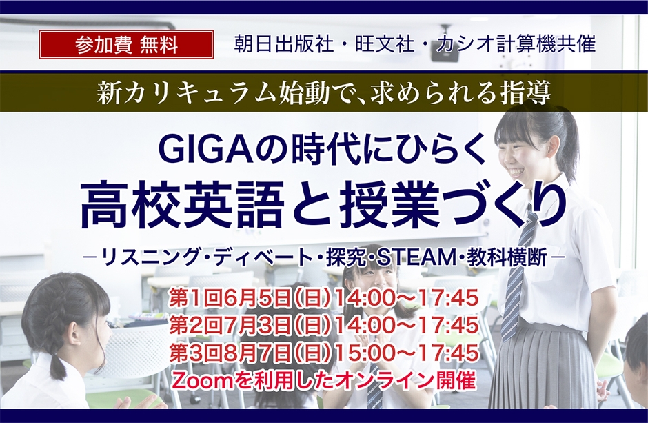 株式会社朝日出版社・株式会社旺文社・カシオ計算機株式会社は、6月から3カ月連続で高校・中高一貫校の英語科の先生を対象にした無料オンラインセミナーを共同開催いたします。