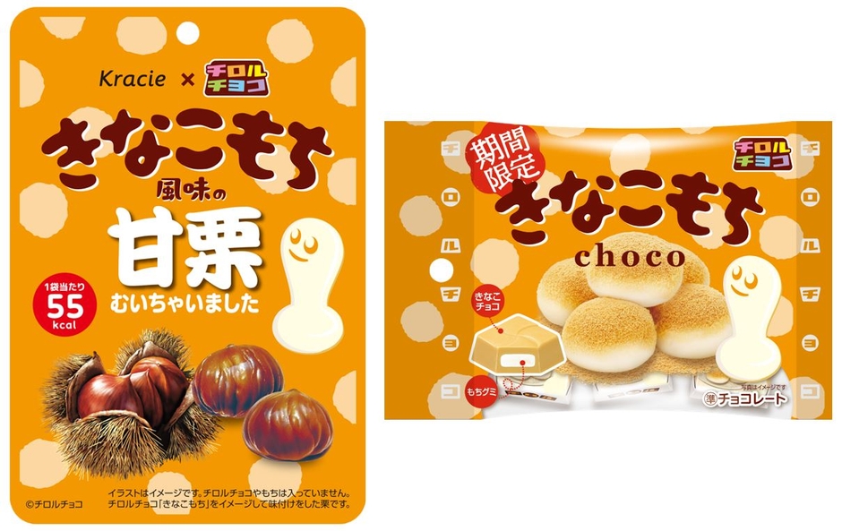 1998年の発売以来、手軽に食べられる自然派おやつとして親しまれてきた「甘栗むいちゃいました」。そのシリーズに、チロルチョコのロングセラー「きなこもち」との夢のコラボレーションが実現しました。