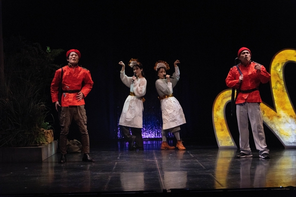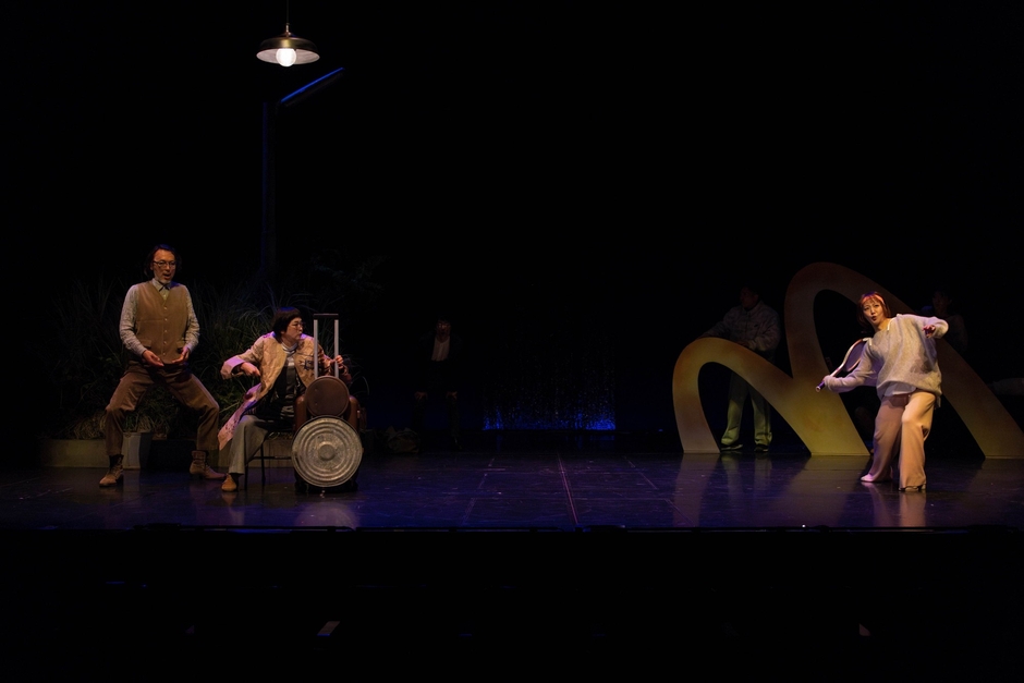 成井が「いつでもどこでも上演可能な芝居」をコンセプトに作ったという言葉の通り、西本の演出においても大掛かりなセットはなく、役者たちの芝居と小道具によって観るものの想像を膨らませるような作りだ。