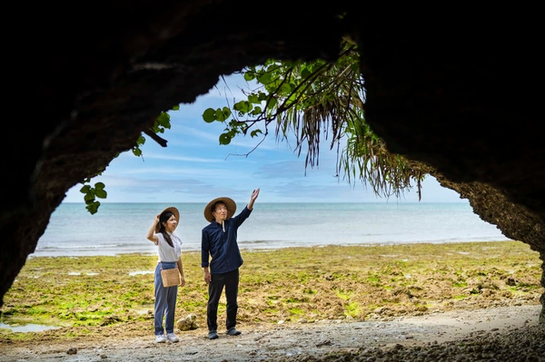 島で生まれ育った海人と一緒に、海辺や浜の岩場に生息する生物や目にする景色の豆知識などを知りながら歩く「竹富島シートレッキング」を体験します。生物の名前を知るだけにとどまらず、竹富島の海のもとで育った海人だからこそ知っている、島の暮らしと海との関わり方を聞くことができます。ひとりで海辺を散歩するだけでは分からない自然環境にまつわる話を知り好奇心が刺激され、海の魅力を体感できるアクティビティです。透き通る海を眺め心地よく身体を動かしながら、竹富島の海を楽しめます。