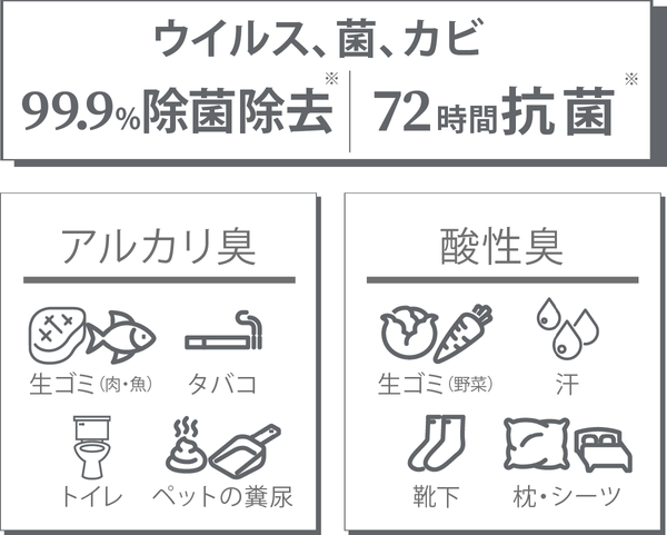 ※2すべてのウイルス、菌、カビ、悪臭に効果があるわけではありません。