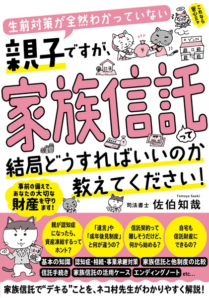 本書では、ネコ村先生となった司法書士の著者が、一見とっつきにくい家族信託の全体像を、イラストと文章の見開き構成でわかりやすく説明します。