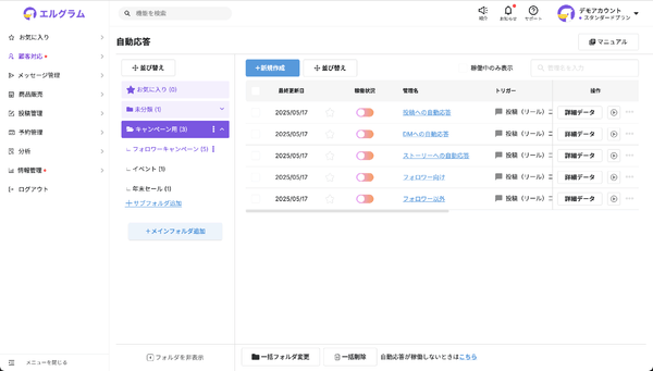・DMの自動返信、一括配信