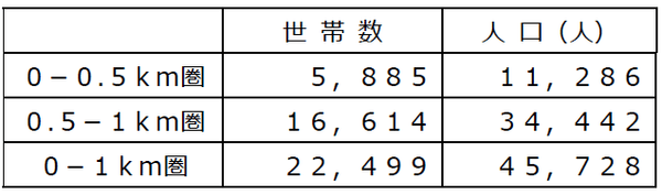 ・店舗から1㎞圏内は単身世帯比率が46.8%、2人世帯比率が24.0%と全体の7割が少人数世帯。