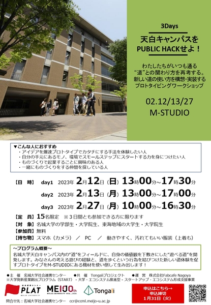 【名城大学】「遊べる道を開発せよ」春休み3daysでプロトタイピングワークショップ(東海エリアの他大学生も参加可)