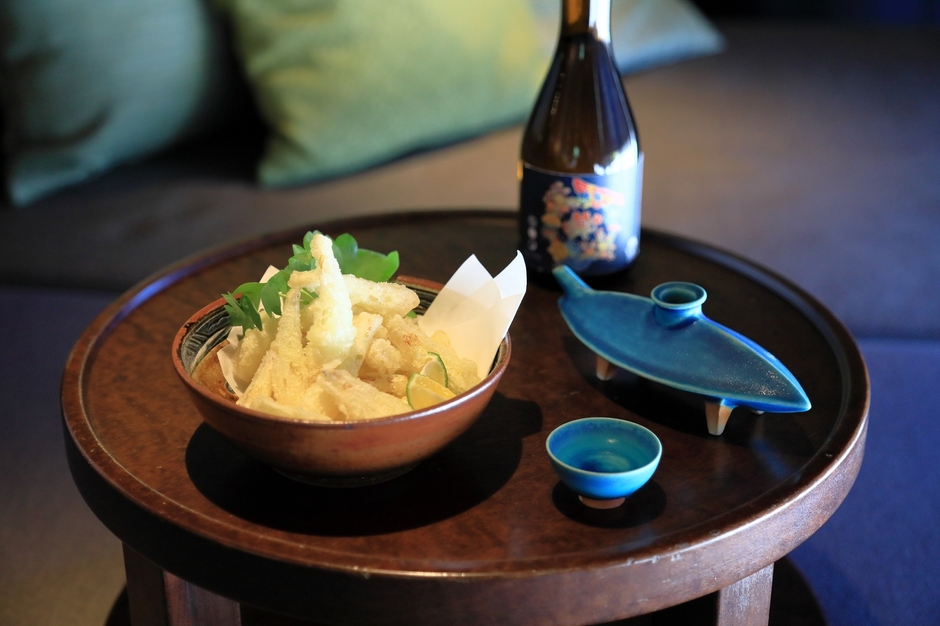 夜には、客室の縁側で泡盛を嗜む「月光晩酌」を楽しみます。長寿地域であるブルーゾーンの研究によると、沖縄県の100歳人は適度にお酒を嗜むとされています。月光晩酌で楽しむのは、八重山の泡盛と小ぶりながらも香り高い島らっきょうの天ぷらです。心地よい夜風を感じながら泡盛を片手に過ごす夜のひとときです。