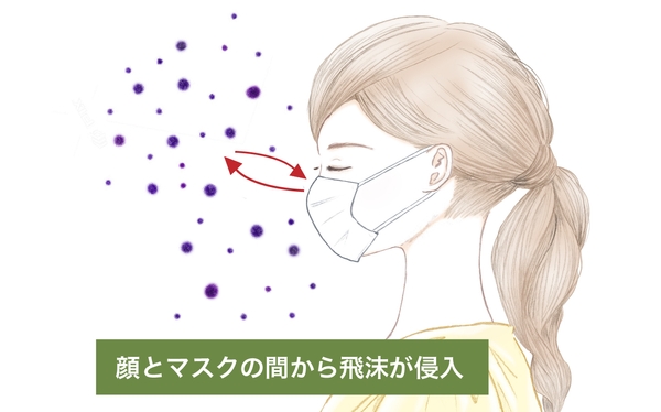 不織布マスクを着用したとしても小さな飛沫を防ぐことは難しく3割の飛沫を吸い込んでしまいます。