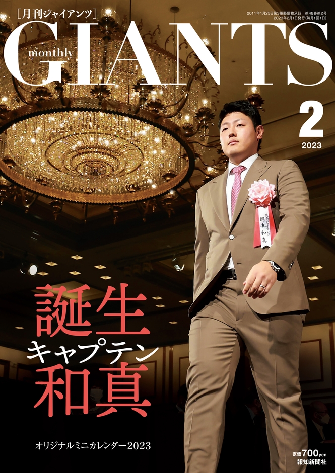 表紙は、戦後最年少タイでジャイアンツの第20代キャプテンに就任した岡本和真選手。巻頭の独占インタビューでは、2022年シーズンを振り返り、主将として初めて迎える23年シーズンへの意欲を語っています。副キャプテンとなった吉川尚輝選手、投手キャプテンとなった戸郷翔征投手、新人王を獲得した大勢投手、一塁手で史上初めてセパ両リーグでゴールデン・グラブ賞を獲得した中田翔選手らもクローズアップしました。