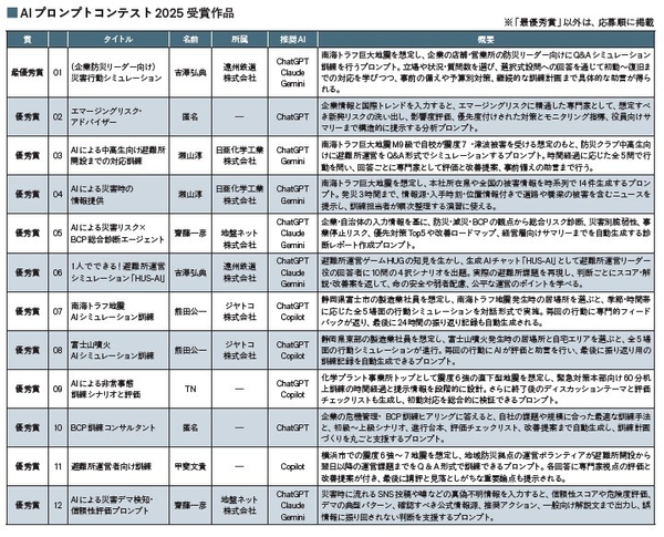 選定された12 のプロンプトは、12月19日に発刊する危機管理白書2026(https://www.risktaisaku.com/articles/-/107983)で概要を紹介するとともに、すべてのプロンプトも公開する予定。