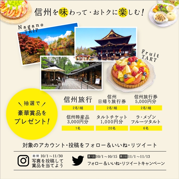 信州旅行やフルーツタルトが当たるキャンペーン詳細