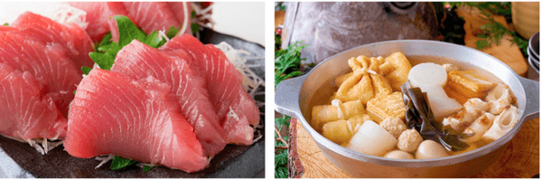 右:まぐろのアラから出た濃厚な出汁を使ったおでん。