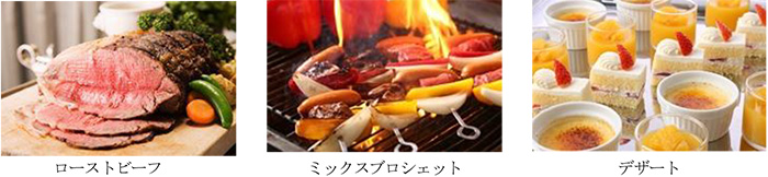 イメージ大宴会場でホテルシェフがご提供するお料理の数々が自慢。ローストビーフや握り寿司、天麩羅や黒酢の酢豚など和洋中のお料理とともに、カタラーナ(アイスブリュレ)やフローズンドリンクなど暑い夏にピッタリの デザートもご用意しております。また、無料でご参加いただける「お子様手作り体験コーナー」や「パティシエ体験」などを開催!夏休みの思い出作りに、ご家族の皆様でご参加ください。