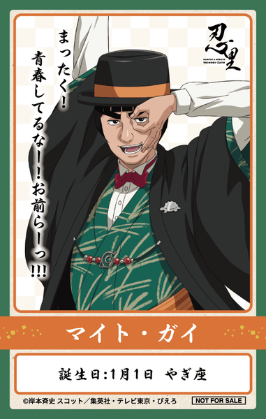 本イベントでは毎月、忍里限定の描き下ろしイラストを使用した、オリジナルバースデーステッカーをプレゼント。1月は、「マイト・ガイ」「我愛羅」「波風ミナト」をお祝いします!