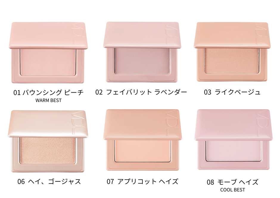 自然にラメがきらめく明るいピーチの輝きカラー、ハイライターとしても◎