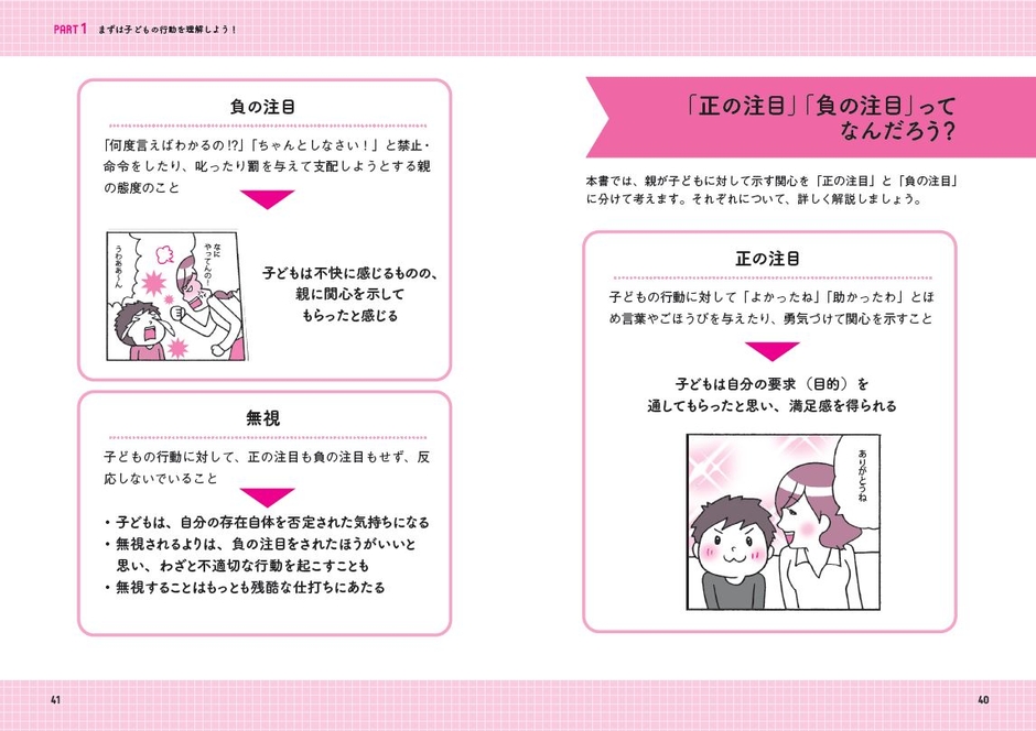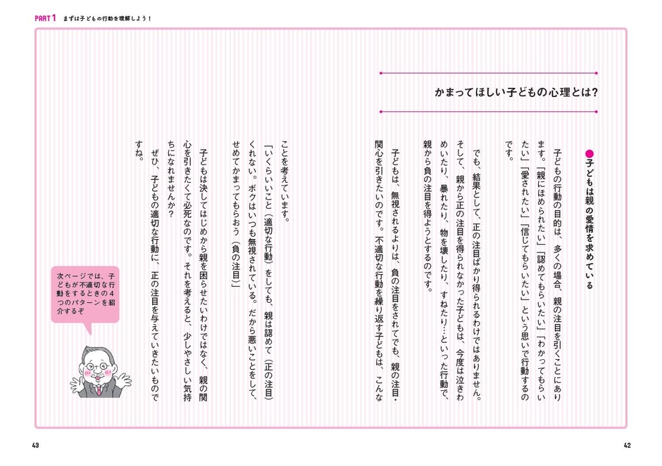 そんなあなたの心の声に応え、子どもの行動を理解すること、子どもとのかかわり方、子どもの伸ばし方・自立力の育て方、叱らず怒らず子どもに伝わる言い方…など、子育てでかならず直面する悩みや問題を解決する内容になっています。