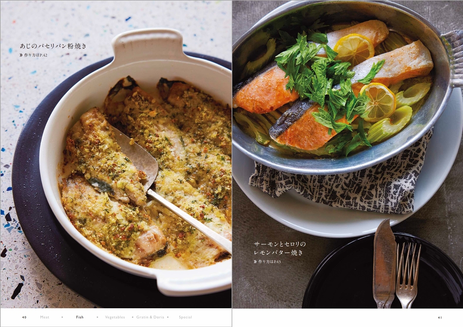 この本では、「材料を切って、味をつけて、耐熱容器に入れてオーブンで焼くだけ」と手軽に毎日のおかず作りに役立つレシピをたくさん紹介しています。