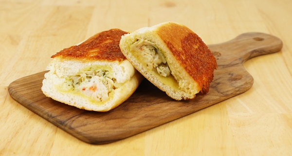 食欲の落ちる暑い夏でもおいしくお召し上がりいただける調理パンをお届けしたいと思い「パニーニ(桜島どり&バジル)」を開発いたしました。鹿児島県産の銘柄どり「桜島どり」を選び、脂身の少ないむね肉をオリーブオイル・白ワインビネガーでマリネしました。後味がさわやかなジェノベーゼソースを合わせることで、さっぱりとお召し上がりいただくことができます。
