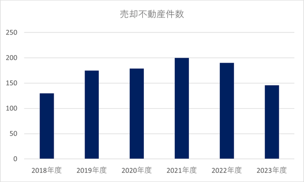 2020年度以降、新型コロナウィルス感染症の拡大と先行きの不透明さから不動産を活用した財務戦略(CRE戦略)を講じる企業が増加したが、2023年5月8日に新型コロナウィルスの感染症法上の位置づけが季節性インフルエンザと同じ「5類」に移行するとともに企業の経営環境も落ち着きをみせ、それに比例するように不動産を売却する企業、また、その積上げ不動産件数もコロナ前の水準に落ち着きを戻した格好となった。