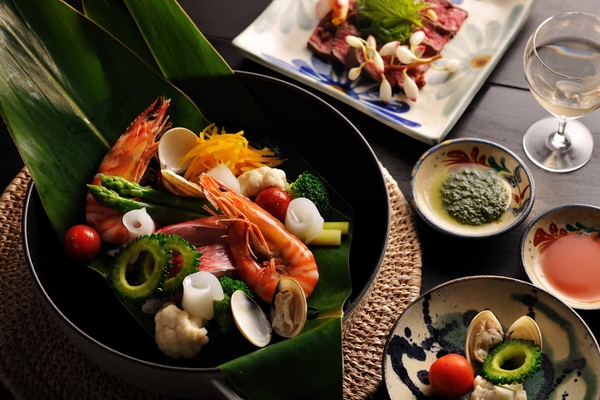 4 月桃の葉で包み込み泡盛で蒸し上げる料理、出来立ての香りを客室で堪能する特別夕食 <葉・花>