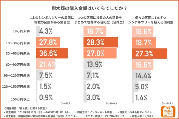 そこで、「樹木葬の購入金額はいくらでしたか?」と質問したところ、以下のような回答結果となりました。