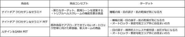 (1) 既存の宅配商品でアプローチできていない若年層顧客、夜の飲用シーンに親和性の高いヘルスクレームを選定。