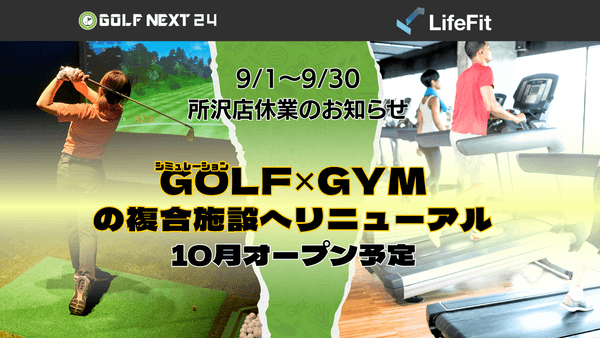 リニューアル工事に伴い、2025年9月1日から9月30日までの1ヶ月間は、GOLF NEXT 24所沢店を一時休業といたします。また、1階フィットネスジムのオープンは2025年10月12日を予定しております。