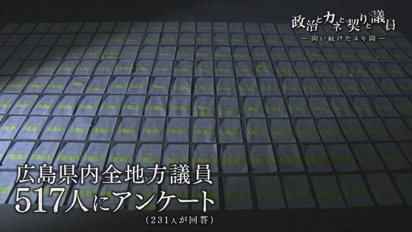 広島ホームテレビは、県内全ての地方議員にアンケートを実施し、その実態を調査。そして、河井事件で被買収となった地方議員に密着し、政治の世界で“お金が持つ意味”を取材した。