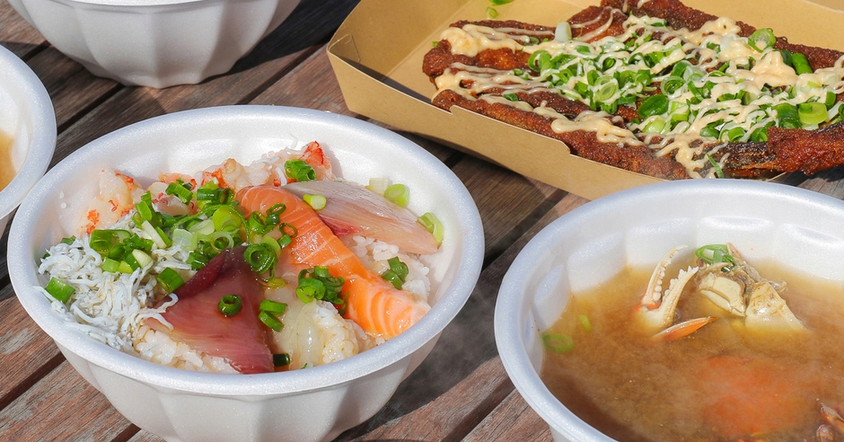 今回のうお市では、イベント限定の海鮮グルメを提供!注目メニューは、「海鮮丼」と「桜鯛のアクアパッツァ」。