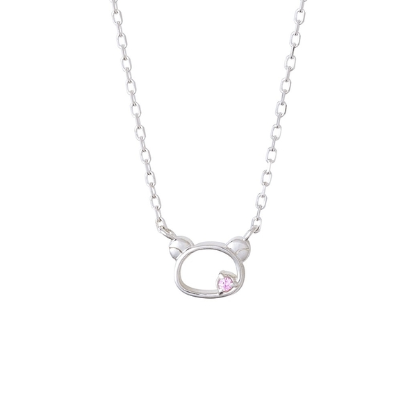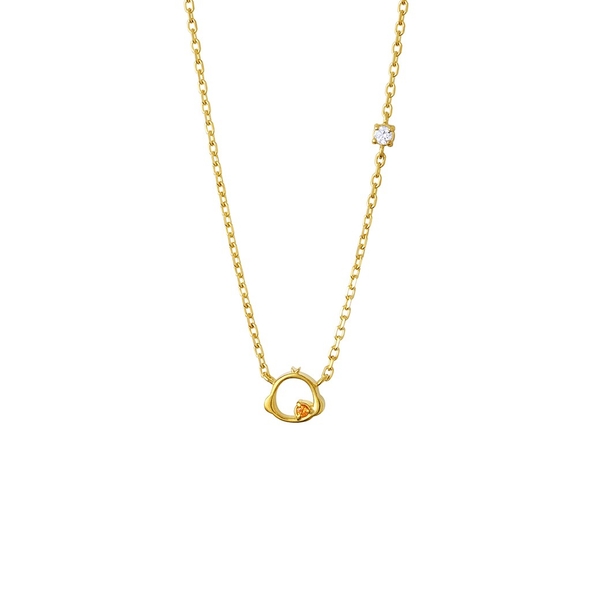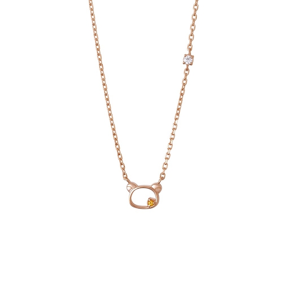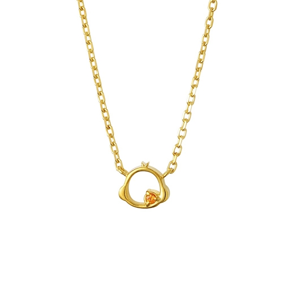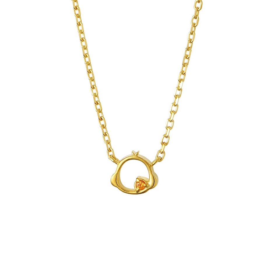 ころんとしたフェイスモチーフに、チェーンの途中にきらりと輝くストーンがアクセント。